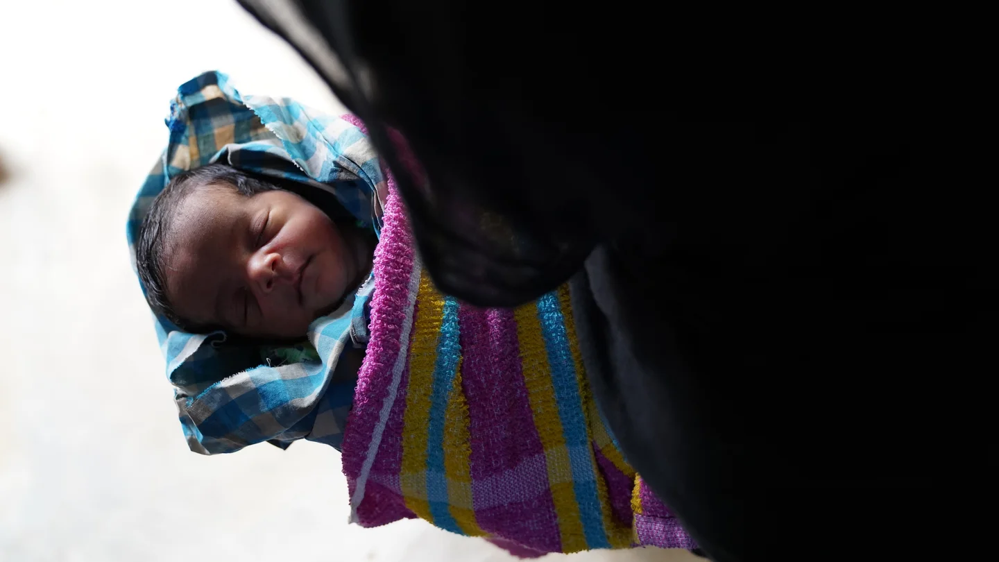 De gezonde baby Sahida is geboren in het gezondheidscentrum van Save the Children in Cox's Bazaar, Bangladesh, tijdens de cycloon Mocha. Dit was mogelijk dankzij de toewijding van het personeel dat onvermoeibaar doorwerkte.