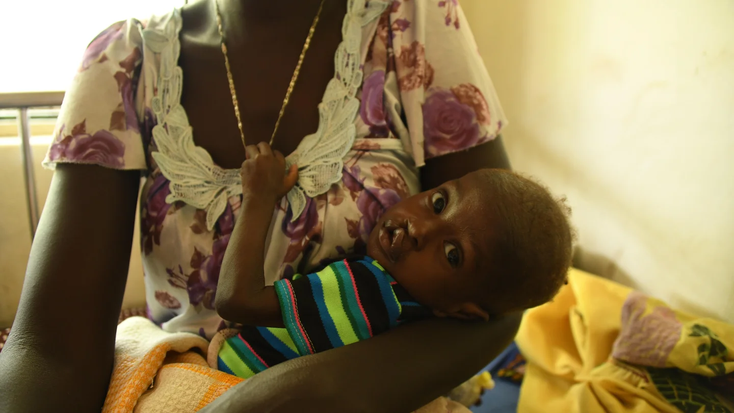 Mary* van 36 is de moeder van Aluel* en komt uit de provincie Akobo. Omdat Aluel sinds haar geboorte ernstig ondervoed is, is ze mentaal achtergebleven. Maria: “Ik kwam naar de provinciehoofdstad om medische hulp te krijgen voor mijn kind, dat nu al meer dan een jaar ziek is. Waar we wonen, verhongeren we omdat de overstromingen van vorig jaar onze gewassen hebben vernietigd. Nu zijn tot overmaat van ramp ook onze koeien gestolen door rivaliserende gemeenschappen. Daarom ben ik nu afhankelijk van hulp.”