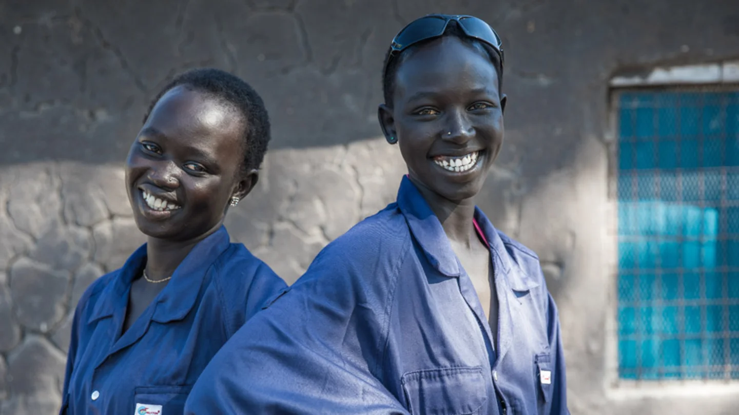 Tina en Maisie uit Zuid-Soedan leren lassen