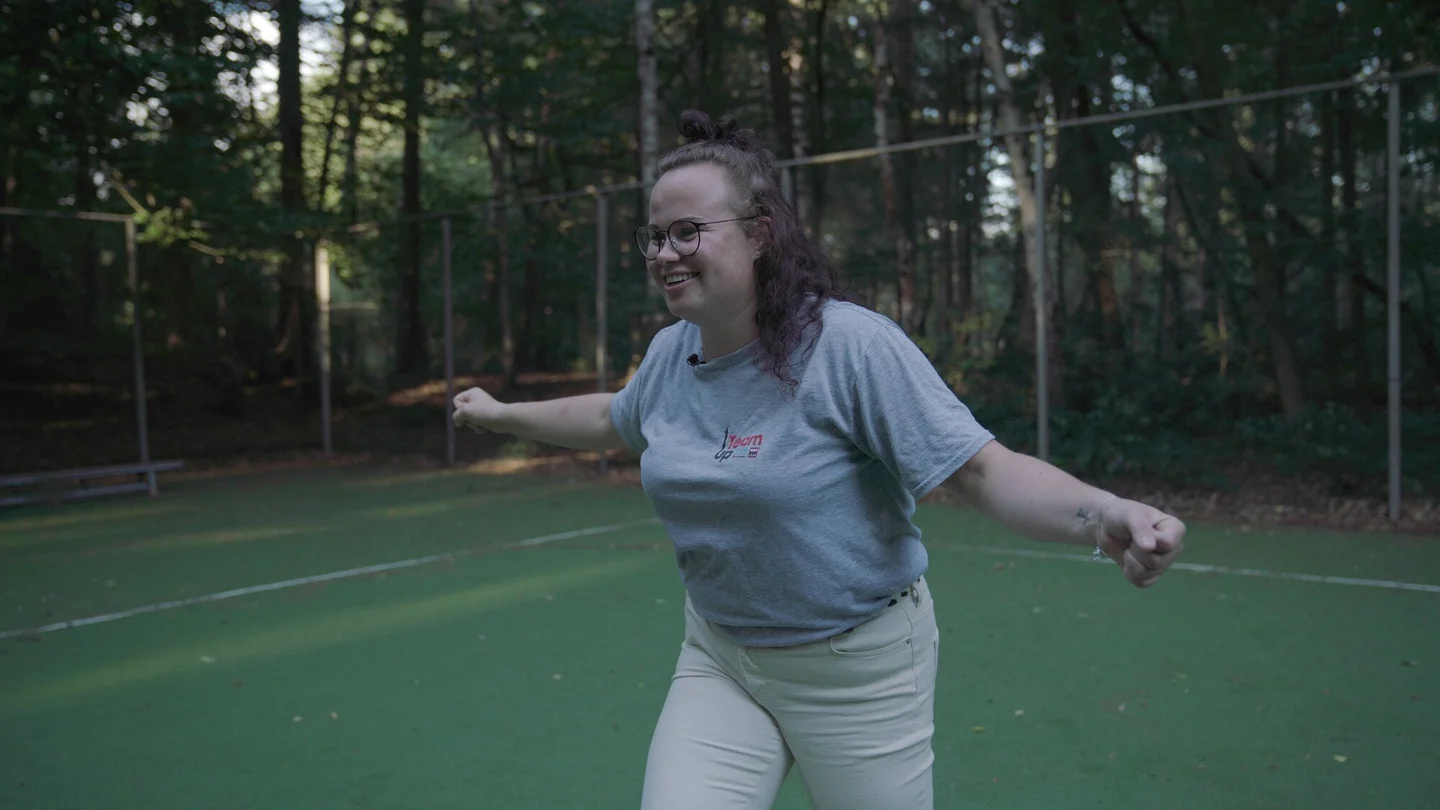 Nathalie (25) staat elke ochtend om 03:00 uur op om naar haar werk te gaan. Eén keer per week begeleidt ze ’s avonds de TeamUp-activiteiten voor gevluchte kinderen. Een lange dag, maar toch kun je Nathalie al drie jaar vinden op het speelveld, met veel plezier. “Ik weet dat de kinderen mij elke week verwachten, en hun glimlach en plezier geeft mij ook weer energie.”